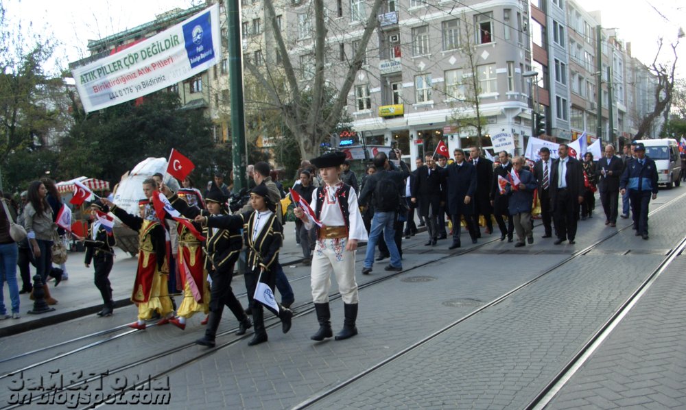 Оттуда вернулись по головоломным серпантинам Босфора через мост, натянутый на тросе в обхват толщиной, на площадь Республики. Там пообедали настоящей шаурмой в пакетике из лаваша (а то ведь и не попробуешь, какая она, настоящая) и направились к трамваю снова по торговой улице, мимо Галатской башни. И снова на нее не забрались - духу не хватило стоять очередь из трехсот человек.