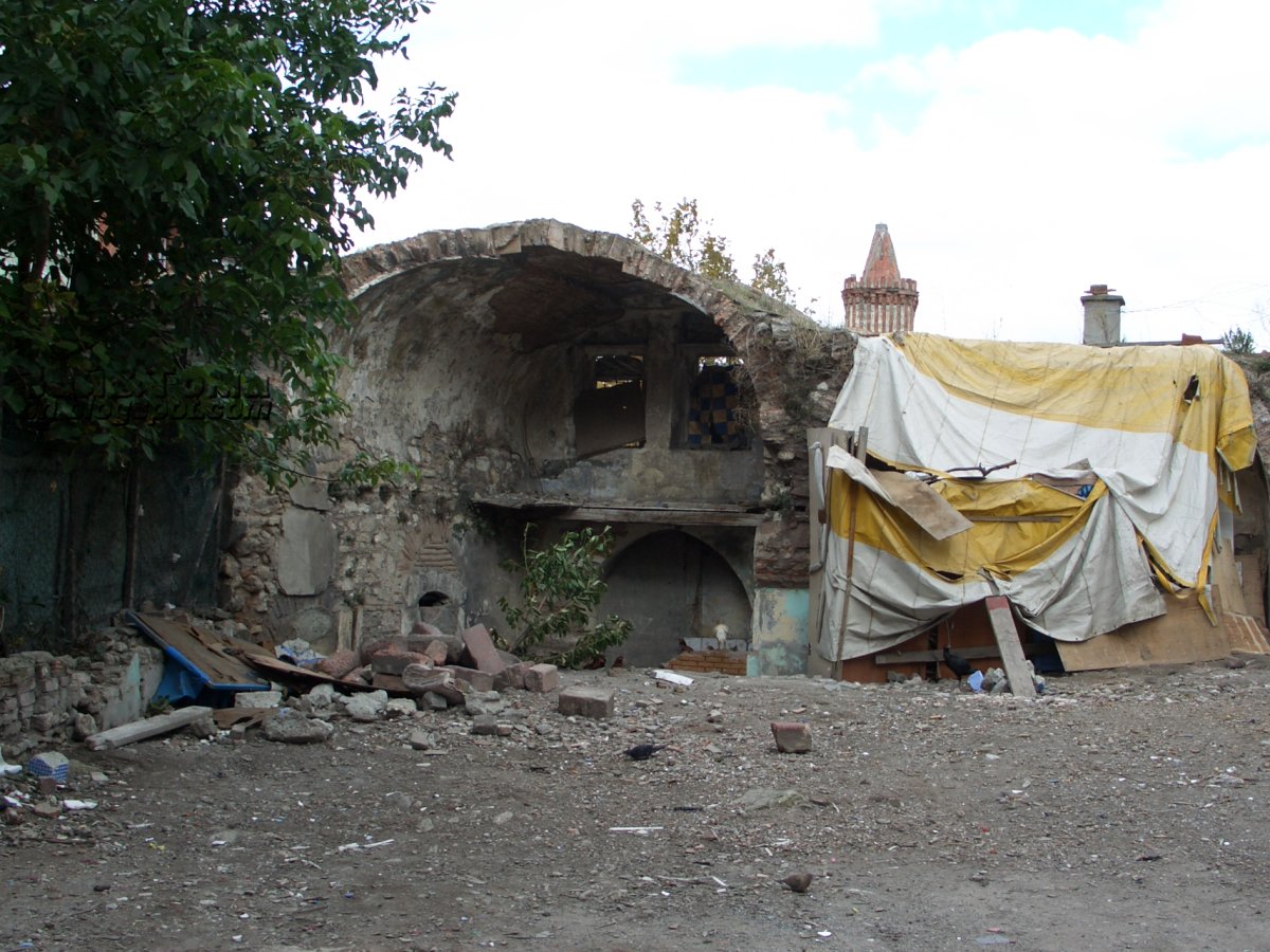 В отдаленные районы центра общественный транспорт не так чтобы ходит. Попытки добраться на водяном трамвайчике за "парулир" на окраины успеха не возымели. Оказывается, причалы Балат и Фенер закрыты, так что мы погрузились у берега на такси и почти за те же деньги доехали до начальной точки путешествия: мечети Селима Грозного. (Вовсю мерещится, что Селим Грозный имеет какое-то отношение к Ивану Грозному, но мечеть, конечно, поновее :)) хотя вот академик Фоменко раскопал карту Константинополя 1572 года, где будто бы только она одна из больших мечетей нарисована. Таксист, не говорящий по-английски, предполагал всю дорогу, что мы ошиблись и нам надо на самом деле к мечети Магомета (Фатиха, то есть) и даже провез нас мимо нее, потыкав пальцем. "Ага, мы знаем", - сказали мы, проезжая по улице, одной стороной которой явилась большая каменная стена квартала мечети. И вот нас высадили у "Огорода в яме".